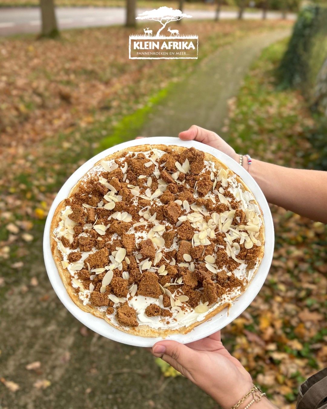 Als de dagen korter worden en de bladeren vallen, is er niets fijner dan iets warms en zoets op je bord. Deze maand verwennen we je met een pannenkoek vol herfstgeluk: een naturel pannenkoek met een romig laagje mascarpone, kruidige speculaasbrokken en een vleugje amandelschaafsel voor die perfecte crunch.